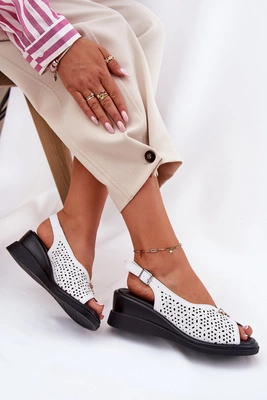 Skórzane Ażurowe Sandały Damskie Na Koturnie Vinceza 79529 Białe