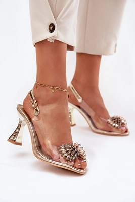 Transparentne Sandały Na Obcasie Z Kryształkami Vinceza 70116 Złote