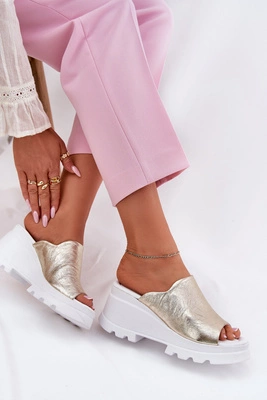 Skórzane Klapki Na Koturnie Artiker 56C0435 Złote