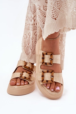 Klapki Damskie Na Platformie Z Klamrami Beżowe Xanivia