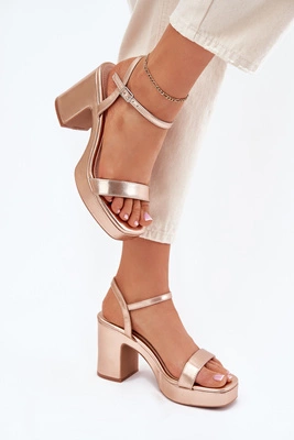 Eko Skórzane Sandały Na Słupku Różowe Złoto Lillita