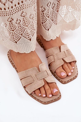 Zdobione Klapki Na Płaskim Obcasie Khaki Anniles