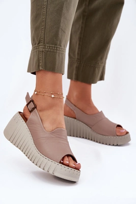 Sandały Damskie Z Naturalnej Skóry Na Koturnie Artiker 54C0788 Ciemnobeżowe