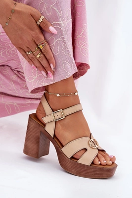 Sandały Damskie Na Słupku Ze Złotą Ozdobą Beżowe Nusorilis
