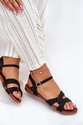 Płaskie Połyskujące Sandały Damskie S.Barski KV51-022 Czarne