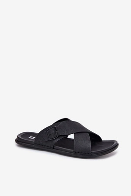 Skórzane Klapki Męskie Z Klamrą Big Star RR174076 Czarne