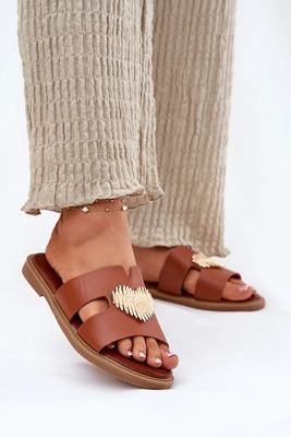 Klapki Damskie Na Płaskim Obcasie Ze Złotą Ozdobą Camel Karinma