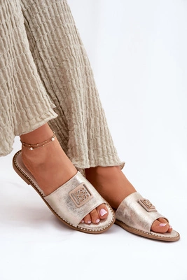 Damskie Klapki Na Płaskim Obcasie Z Ozdobą S.Barski KV51-089 Złote