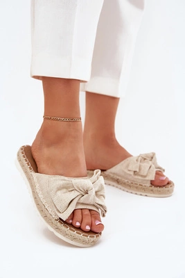 Klapki Damskie Na Platformie Z Plecionką I Kokardką Beżowe Alpireda