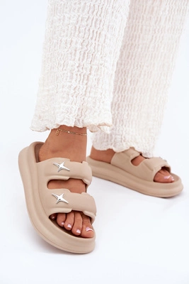 Piankowe Klapki Damskie Na Platformie Ciemnobeżowe Falowena