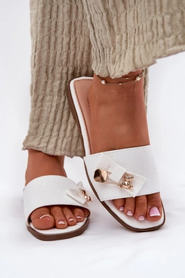 Klapki Damskie Na Płaskim Obcasie Z Kokardą Białe Sallariela