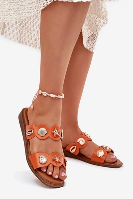 Klapki Damskie Ze Złotymi Przypinkami Pomarańczowe Jenoriela