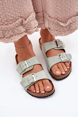 Klapki Damskie Na Korkowej Platformie Klamry Miętowe Evisolla