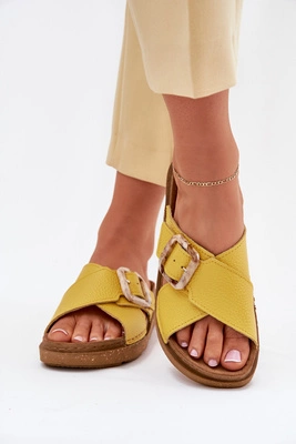 Skórzane Klapki Damskie Z Klamrą Inblu ED0003IU Żółte