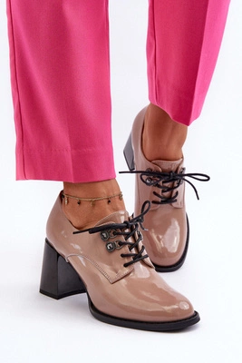 Półbuty Damskie Lakierowane Na Słupku Beżowe Nelione