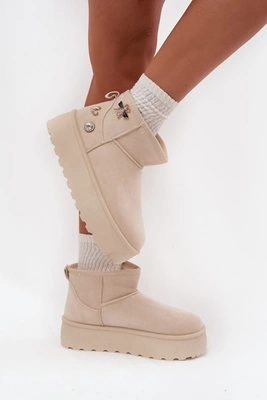 Śniegowce Damskie Na Platformie Z Przypinkami Jasnobeżowe Maelle