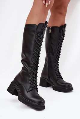 Skórzane Sznurowane Kozaki Na Klocku Ocieplane Vinceza 66804 Czarne