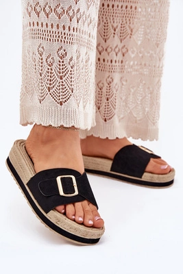 Klapki Damskie Na Platformie Ze Złotą Klamrą Czarne Selira