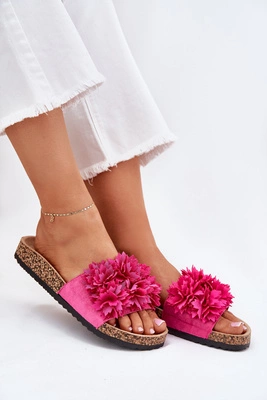 Klapki Damskie Na Korkowej Podeszwie Z Kwiatkami Fuksja Ferenza