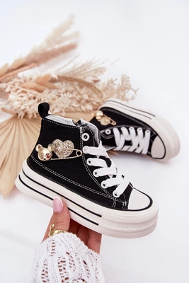 Trampki Dziecięce Wysokie Ze Złotą Ozdobą Czarne Elvena