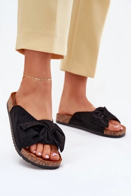 Klapki Damskie Na Korkowej Podeszwie Kokardką Czarne Seressa