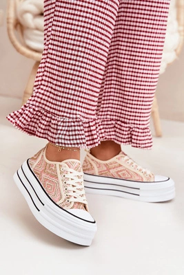 Niskie Trampki Damskie Na Platformie Różowe Melina