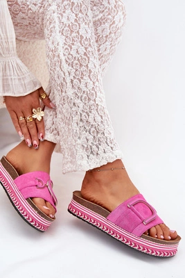 Klapki Damskie Na Platformie Z Ozdobą Fuksja Daphira