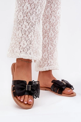 Klapki Damskie Na Płaskim Obcasie Z Tiulową Kokardą Czarne Tanira