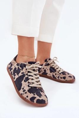 Zamszowe Trampki Barefoot Damskie W Łaty Zazoo N1120 Brązowo-Beżowe