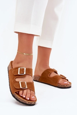 Klapki Damskie Ze Złotymi Klamrami I Przeszyciami Camel Lunera