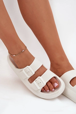 Piankowe Klapki Damskie Z Klamrami Vinceza 76056 Białe