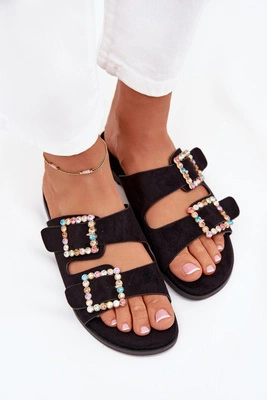Klapki Z Klamrami Na Płaskim Obcasie Czarne Tovira