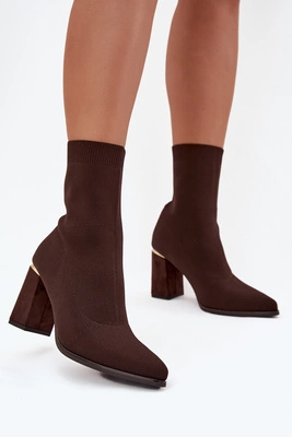 Materiałowe Wsuwane Botki Damskie Na Słupku Czekoladowe Virelle