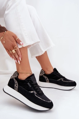 Zamszowe Sneakersy Damskie Big Star OO274A312 HI-POLY SYSTEM Czarne Panterka