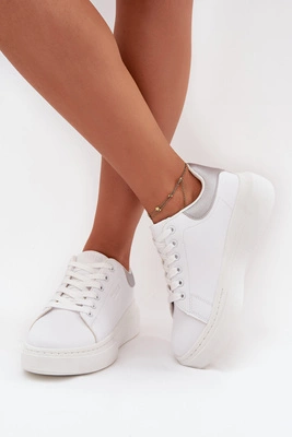Sneakersy Damskie Na Platformie Big Star SS274245 Biało-Srebrne