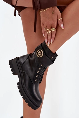 Botki Workery Damskie Ze Złotym Detalem Ocieplane Czarne Fiorena