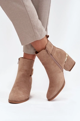 Ocieplane Botki Damskie Na Słupku Ze Złotymi Elementami Beżowe Ambrine