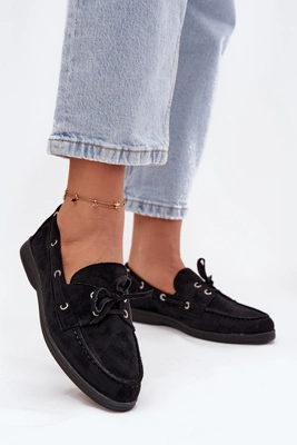 Półbuty Mokasyny Damskie Z Wiązaniem Czarne Calivra
