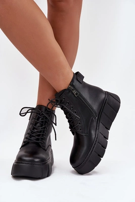 Skórzane Ocieplane Botki Damskie Na Platformie Vinceza 66803 Czarne