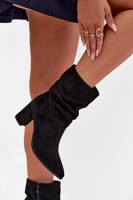 Botki Damskie Na Słupku Z Marszczeniem Ocieplane Czarne Amelise