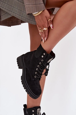 Botki Workery Damskie Ocieplane Z Ozdobami Czarne Olivira