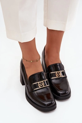 Półbuty Damskie Na Słupku Ze Złotym Detalem Czarne Privelle