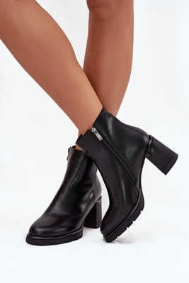 Skórzane Botki Damskie Na Słupku Czarne Julissa