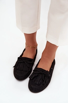 Mokasyny Damskie Z Frędzlami I Kokardką Czarne Olivianne