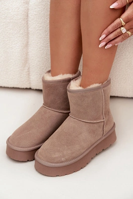 Śniegowce Damskie Z Naturalnego Zamszu Na Platformie Beżowe Privine
