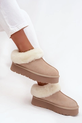 Skórzane Zamszowe Śniegowce Damskie Z Futerkiem Beżowe Mivelle