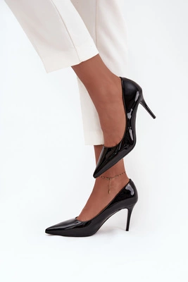 Lakierowane Eko Skórzane Szpilki Damskie Ze Szpiczastymi Noskami Czarne Jadira