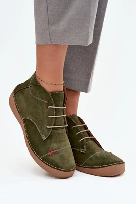Skórzane Półbuty Damskie Z Przeszyciami Na Zamek Artiker 57C2119 Zielone