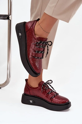 Skórzane Lakierowane Półbuty Damskie Na Platformie Artiker 57C2046 Bordowe