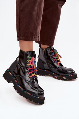 Skórzane Lakierowane Botki Damskie Artiker 57C0064 Czarne